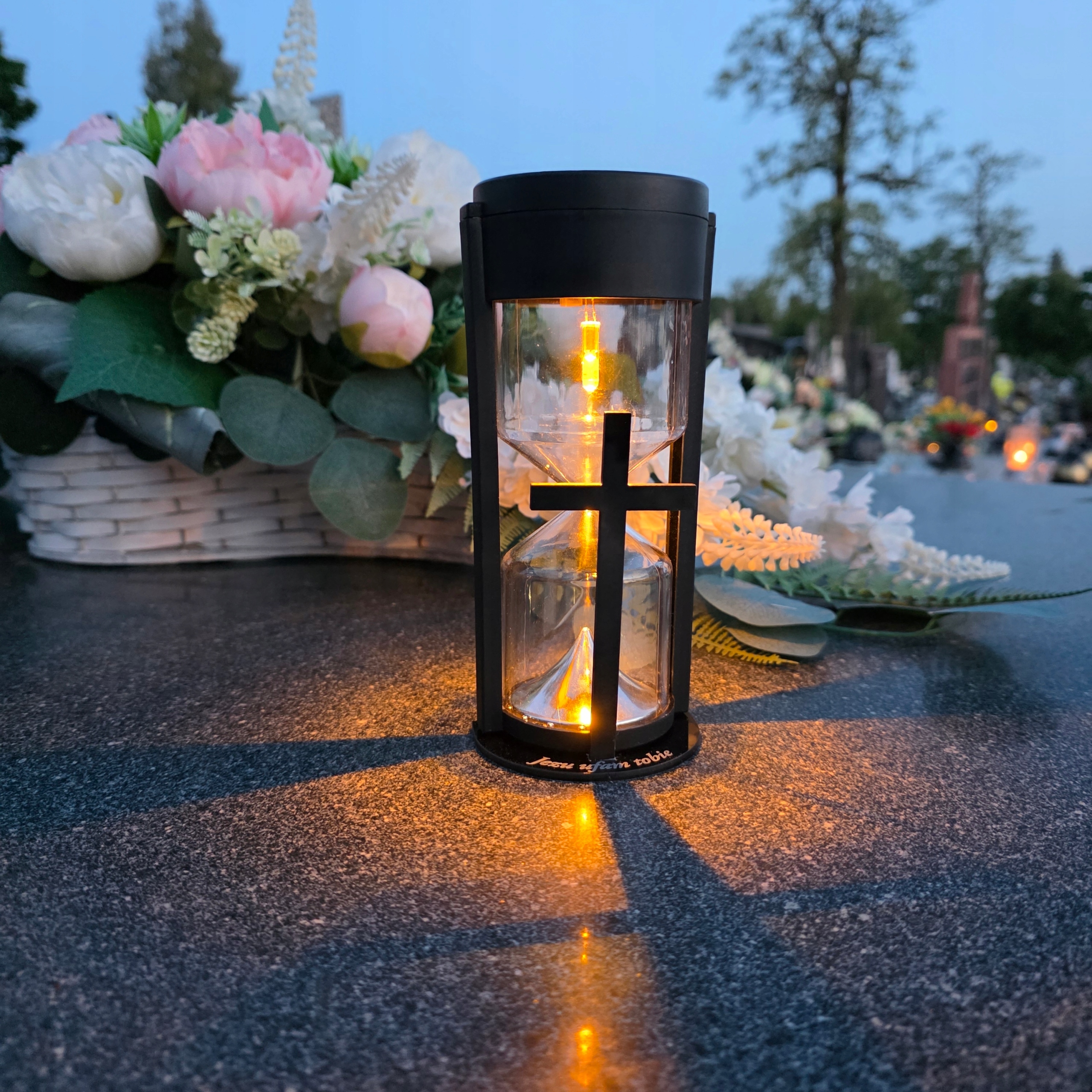 Сонячна лампа Znicz на сучасній могилі, натхненній класиці із Золотим Хрестом