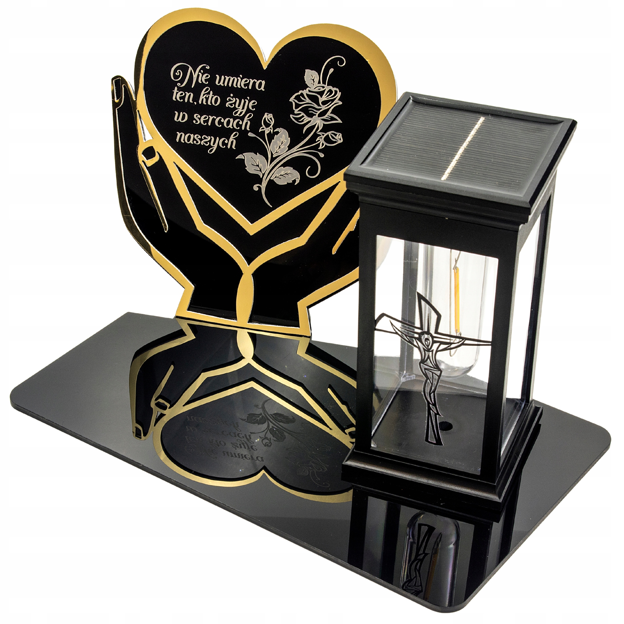 Вічна сонячна свічка для могили з гравірованими акриловими скляними підставками, прикрашеними мотивом золотих рук із серцем