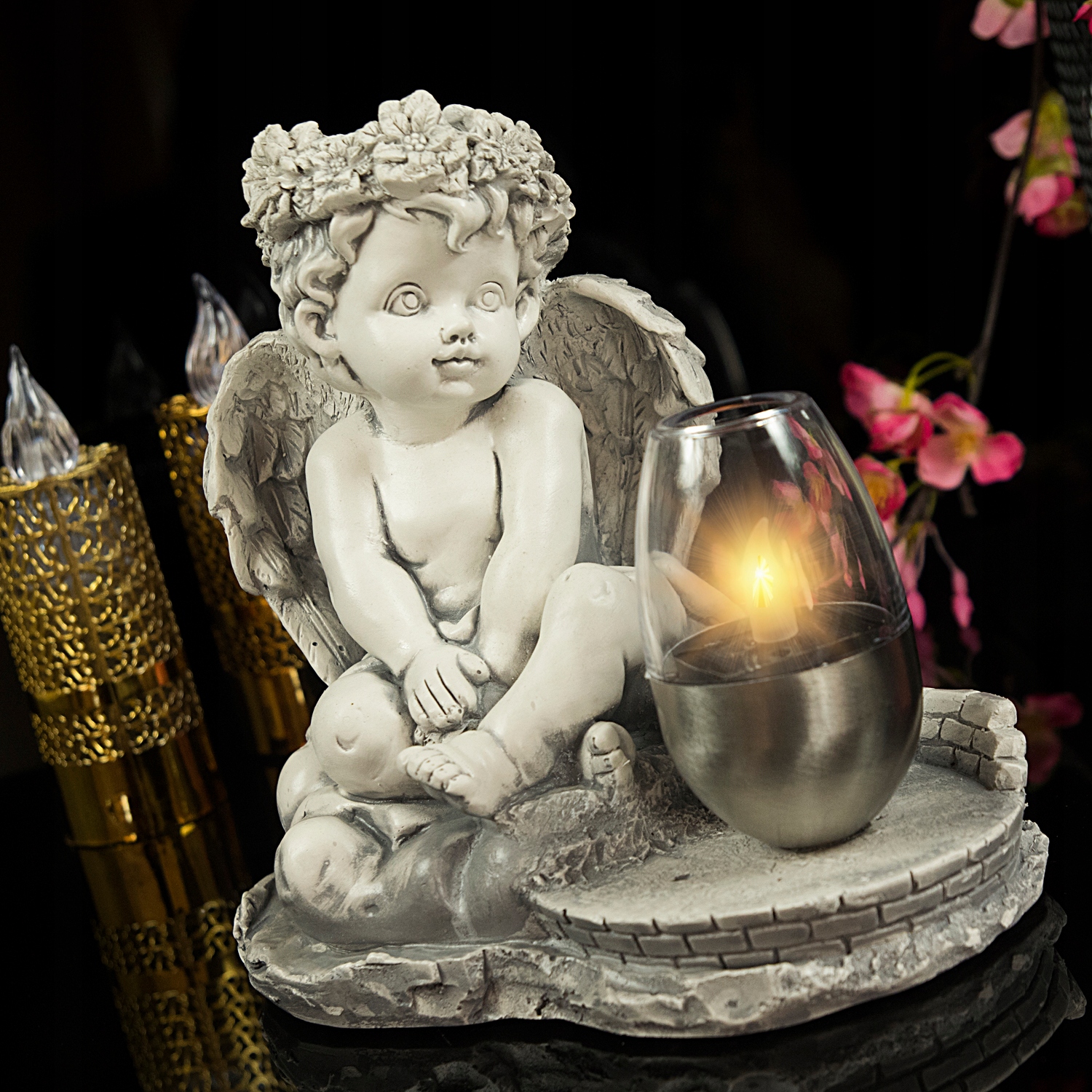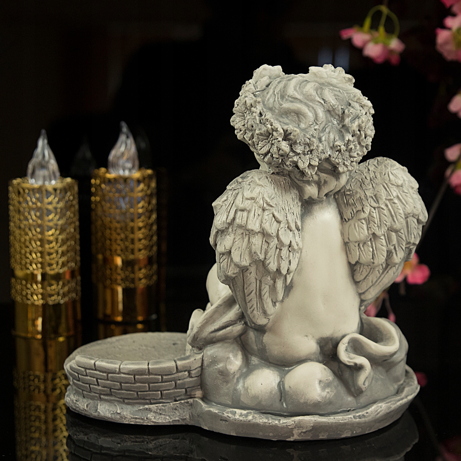 ➡️ Декоративна гіпсова садова фігурка, надгробок зі світлодіодною лампою у формі ангела