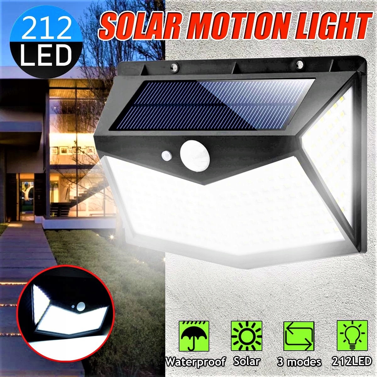 Лампа на сонячних батареях 212 LED з датчиком сутінків і чутливим датчиком руху і бічними світлодіодами з боків лампи додаткове освітлення 270 градусів p>