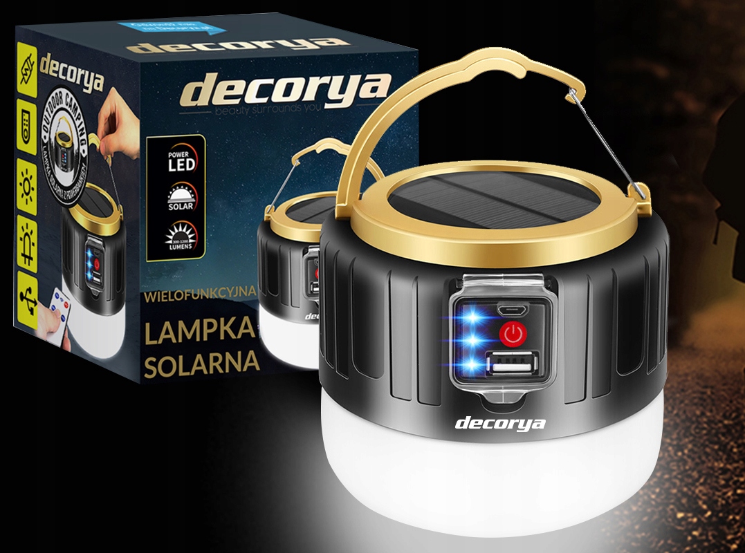 🏕️ Світлодіодний туристичний світильник із павербанком, пультом дистанційного керування та сонячною панеллю від Decorya