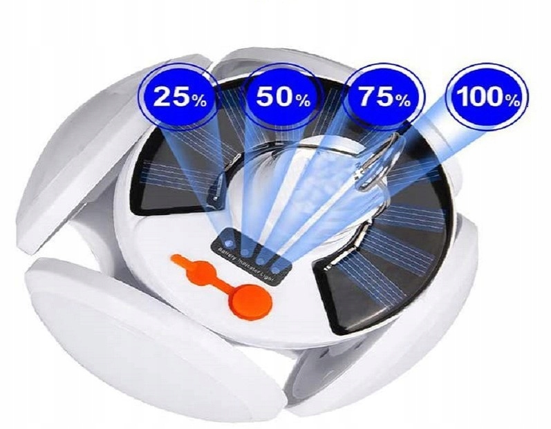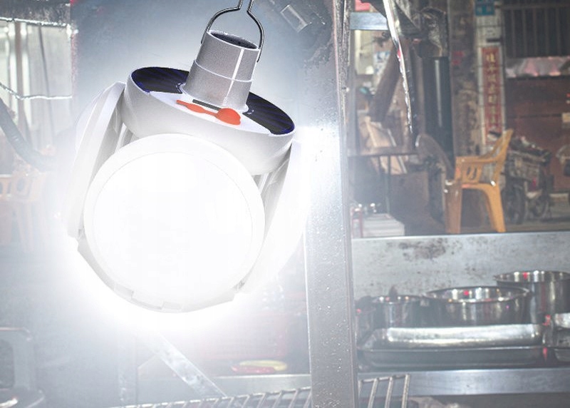 Це портативна світлодіодна лампа для намету, що працює від сонячних батарей. Електрика не потрібна. Високоефективна сонячна панель забезпечує яскравіше світло, але економить більше енергії при щоденному використанні. Підходить для використання вдома та на вулиці