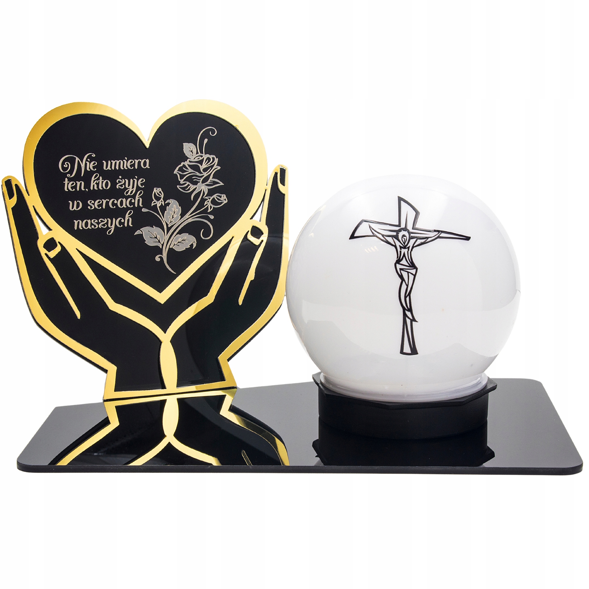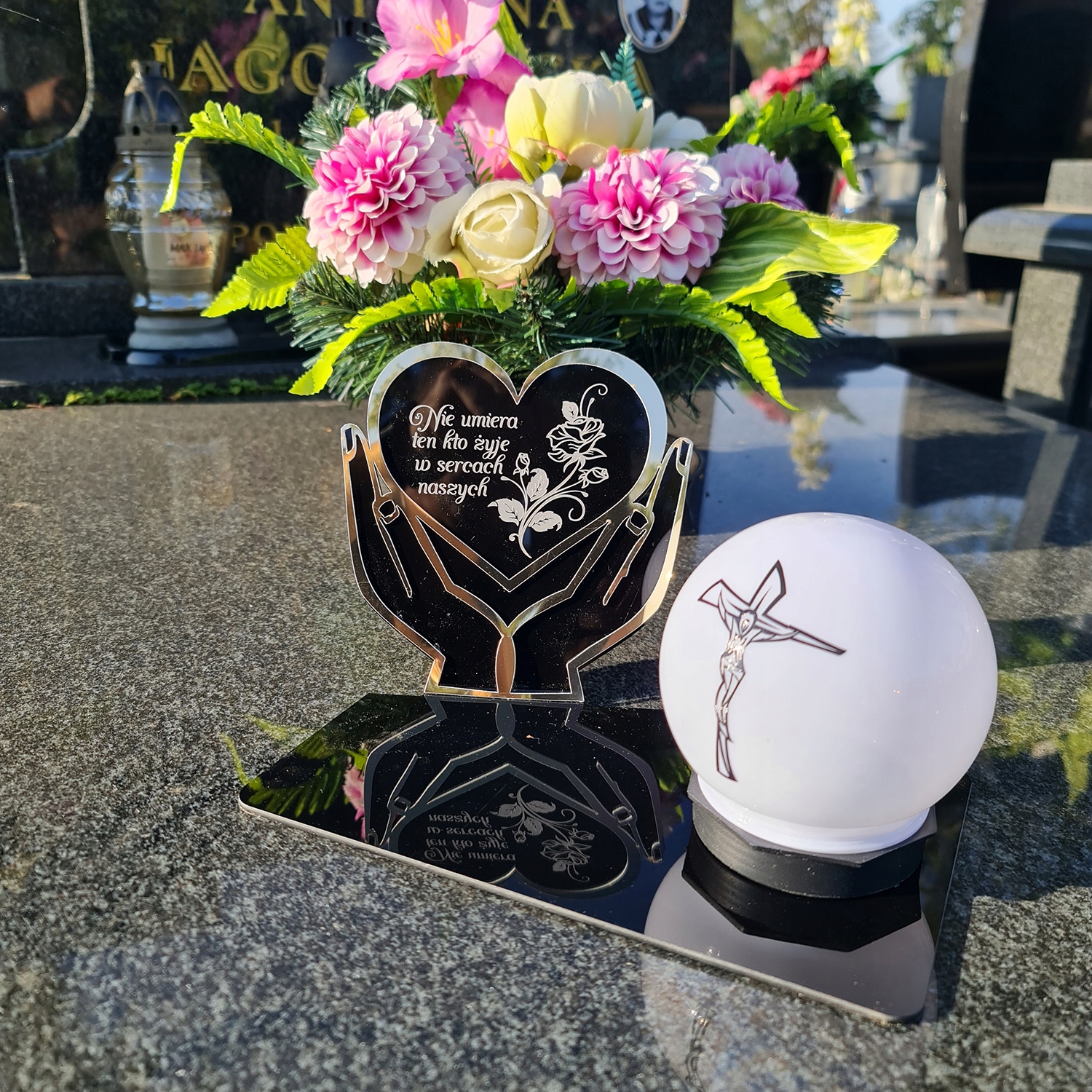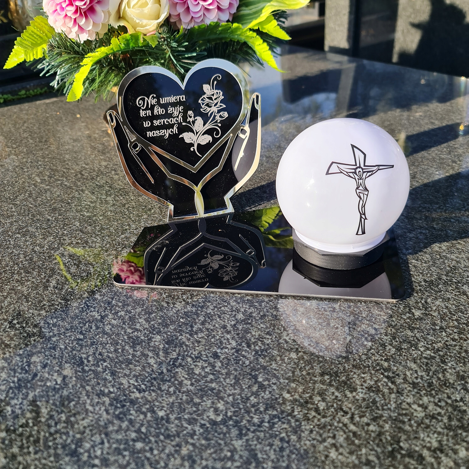 Вічна сонячна свічка для могили з гравірованими акриловими скляними підставками, прикрашеними мотивом золотих рук із серцем