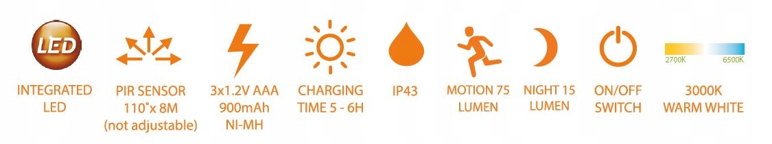 Світло вмикається автоматично Коли надворіть темряву, а потім виробляє 15 люменів, тож у вас завжди буде освітлено передні або задні двері. Якщо рух буде виявлений, світло буде світить яскравіше і створить 75 люмен світла.