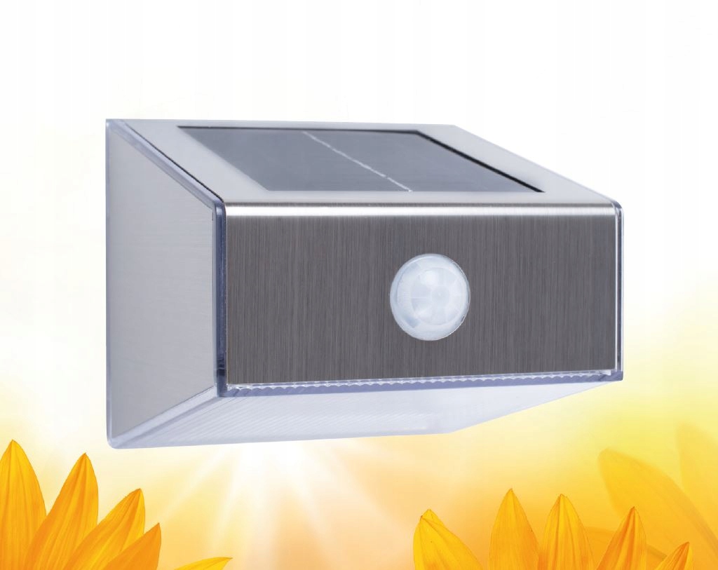 Зовнішня світлодіодна сонячна стінова лампа з литною нержавіючої сталі. Лампа має датчик руху, увімкнувши світло після виявлення трафіку в зоні виявлення. Завдяки сонячному живленням, всі кабелі непотрібні. Лампа дає приємне, тепле світло.