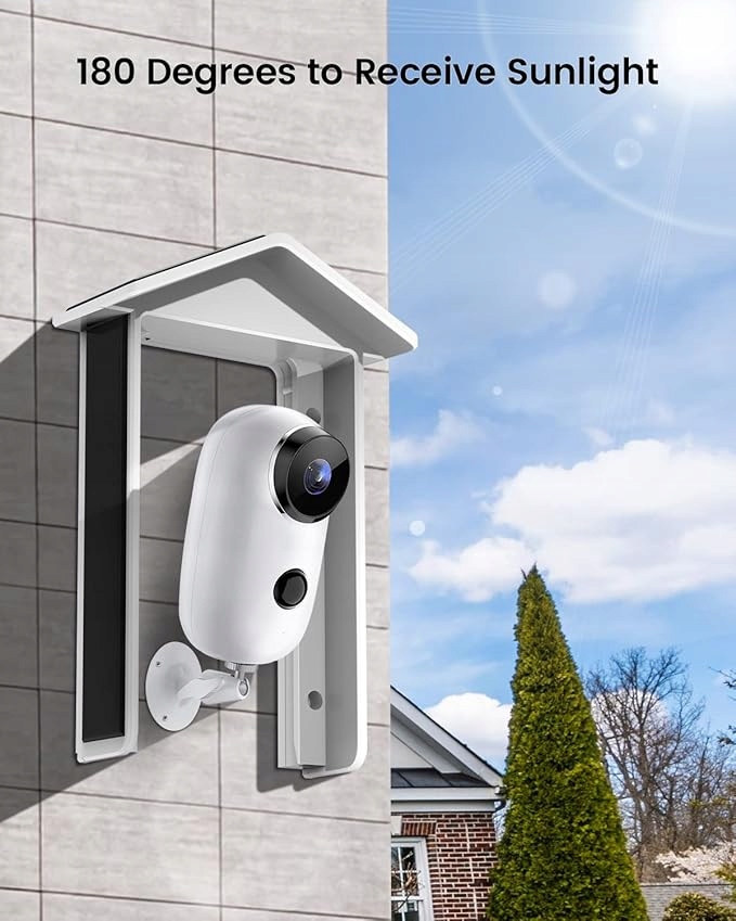 - Просте встановлення: встановіть сонячний зарядний пристрій у місці, де є сонячне світло біля ваших дверей, а потім установіть на нього дверний дзвінок. Оснащений 40 монокристалічними осередками збоку та зверху, він забезпечить 180 градусів для отримання сонячного світла, завдяки чому ваша відеокамера дверного дзвінка заряджається без хвилювань.