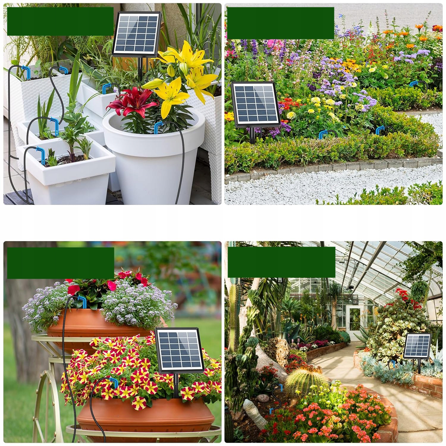 Сонячна панель та зрошувальні комп'ютери мають розділену структуру, що робить полив більш зручним і пропонує більш широкий спектр додатків. Вони підходять для автоматичного поливу рослин у зрошенні газонів, на терасах, у садах, овочах, підвісних кошиках, горшкових рослин, квіткових грядках, теплиці та інших місць.