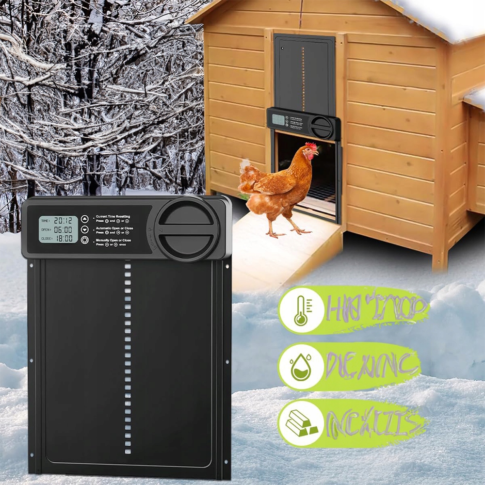 🐔🐔- It is equipped with an integrated LCD screen that allows easy and precise коригування часу відкриття та закриття. Щоб запобігти травмам курячих та забезпечити їх безпеку.