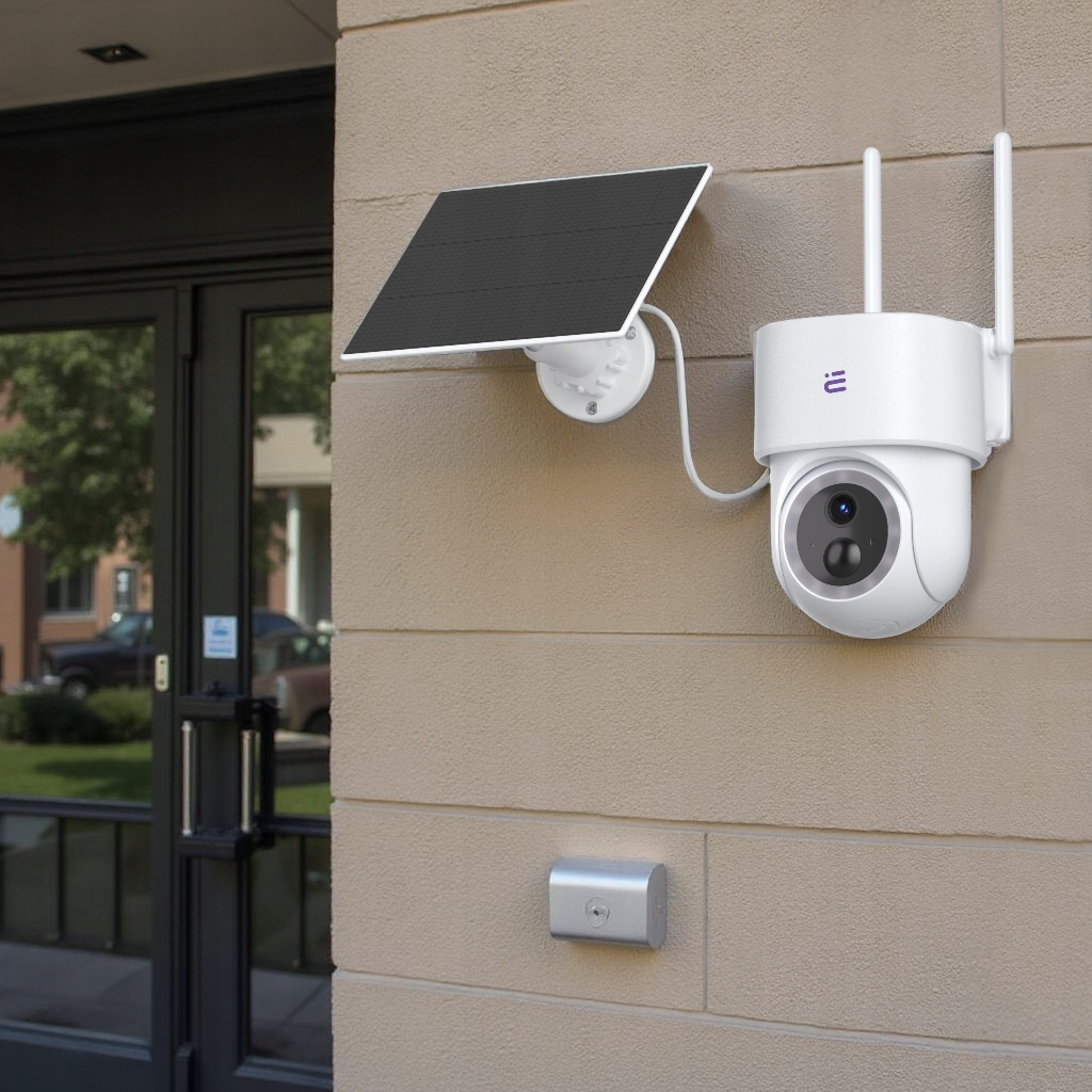 Інтелектуальна зовнішня камера виду на бік, що працює від вбудованої акумулятора та/ або сонячної панелі.