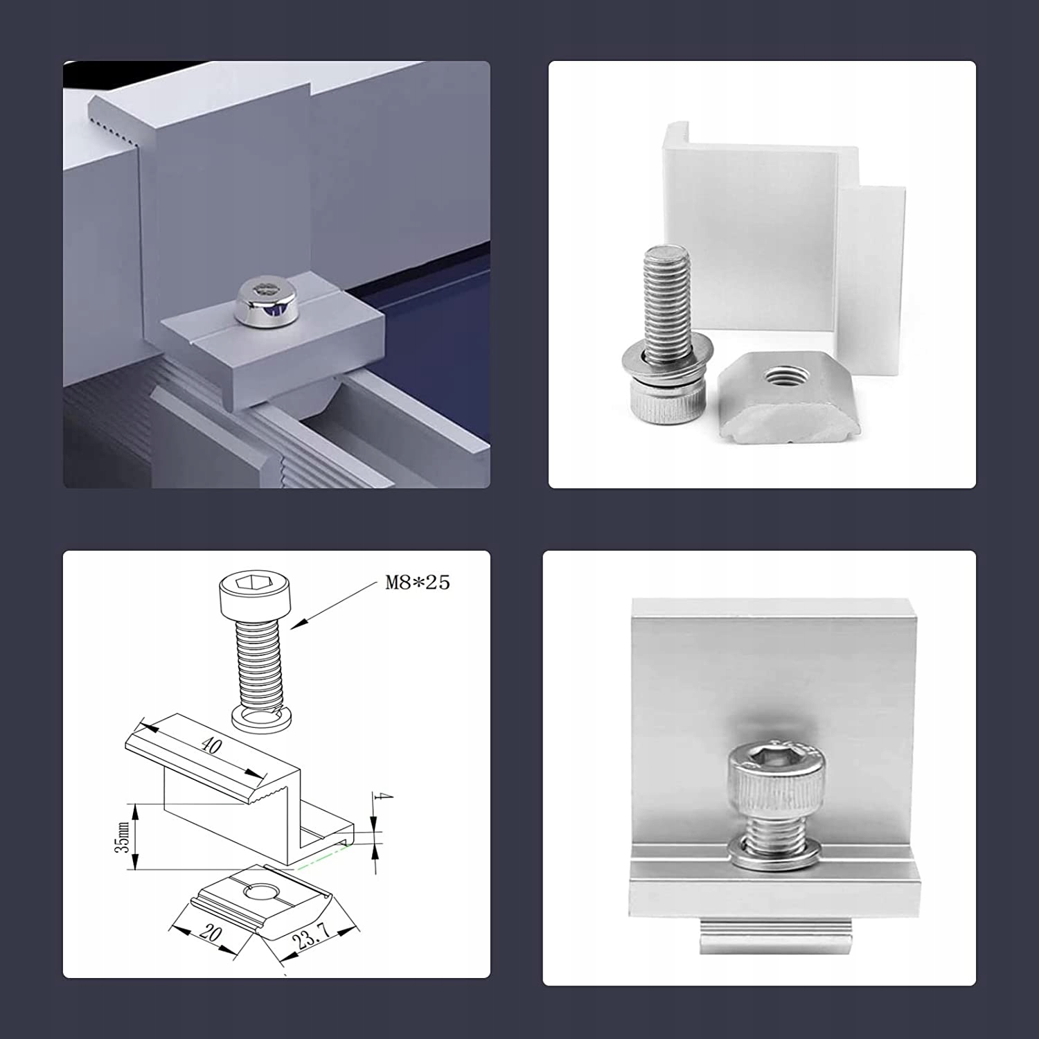 ✅️Ці Алюмінієві центральні затискачі сонячних панелей призначені для кріплення панелей до рейок і забезпечення стабільного з’єднання між панелями. Ідеально підходить для нерівних поверхонь. Монтажні кронштейни Z дуже міцні та довговічні, тому кронштейни важко зігнути.