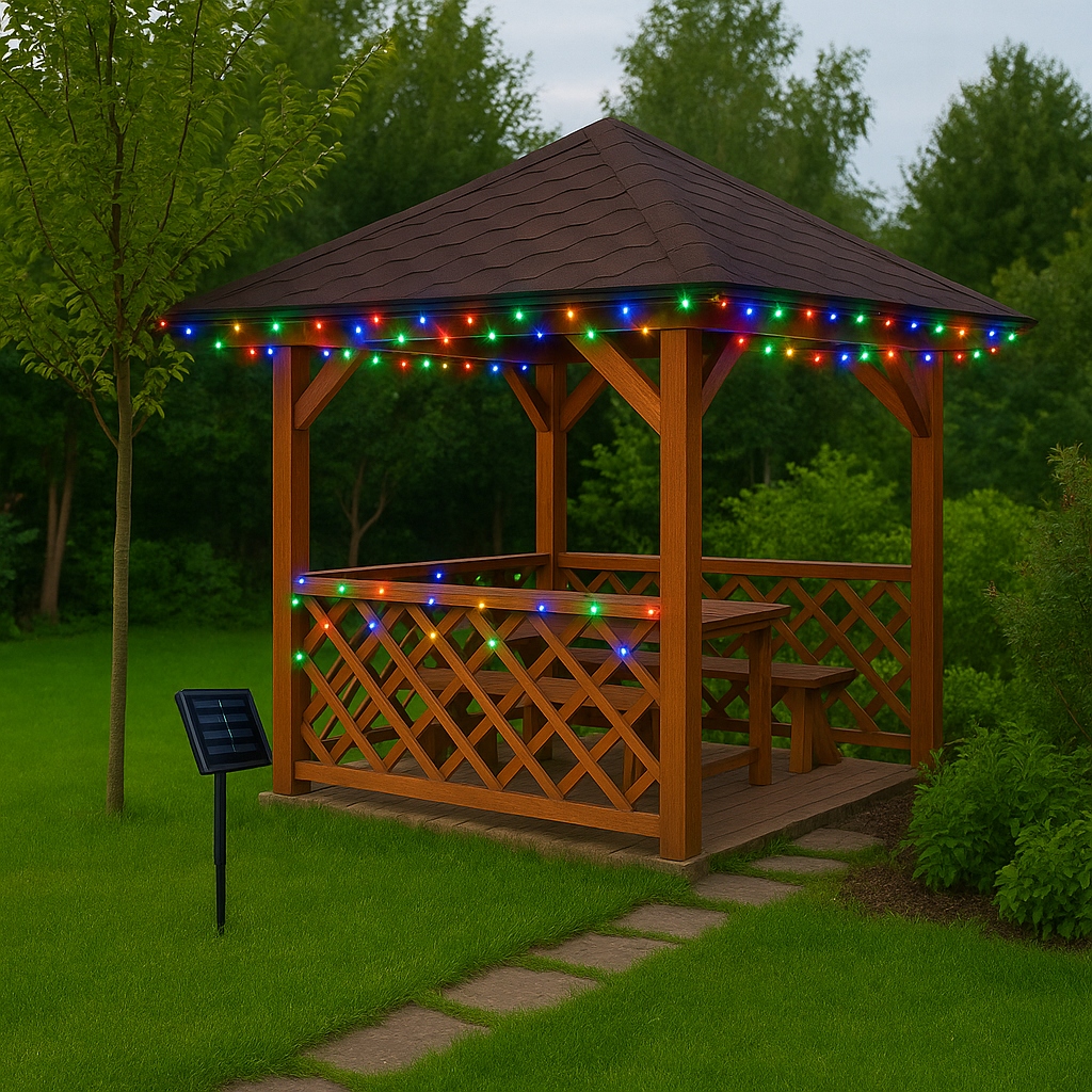 ✔ До 100 яскравих світлодіодів - потужне, барвисте світло чудово освітить ваш сад, альтанку, балкон чи доріжку.