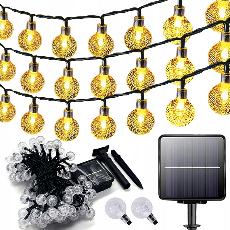 СОНЯЧНІ САДОВІ ГІРЛЯНДИ 50LED ТЕПЛИЙ БІЛИЙ ДЛЯ БАЛКОНУ КУЛЬОВИЙ ЛАНЦЮГ
