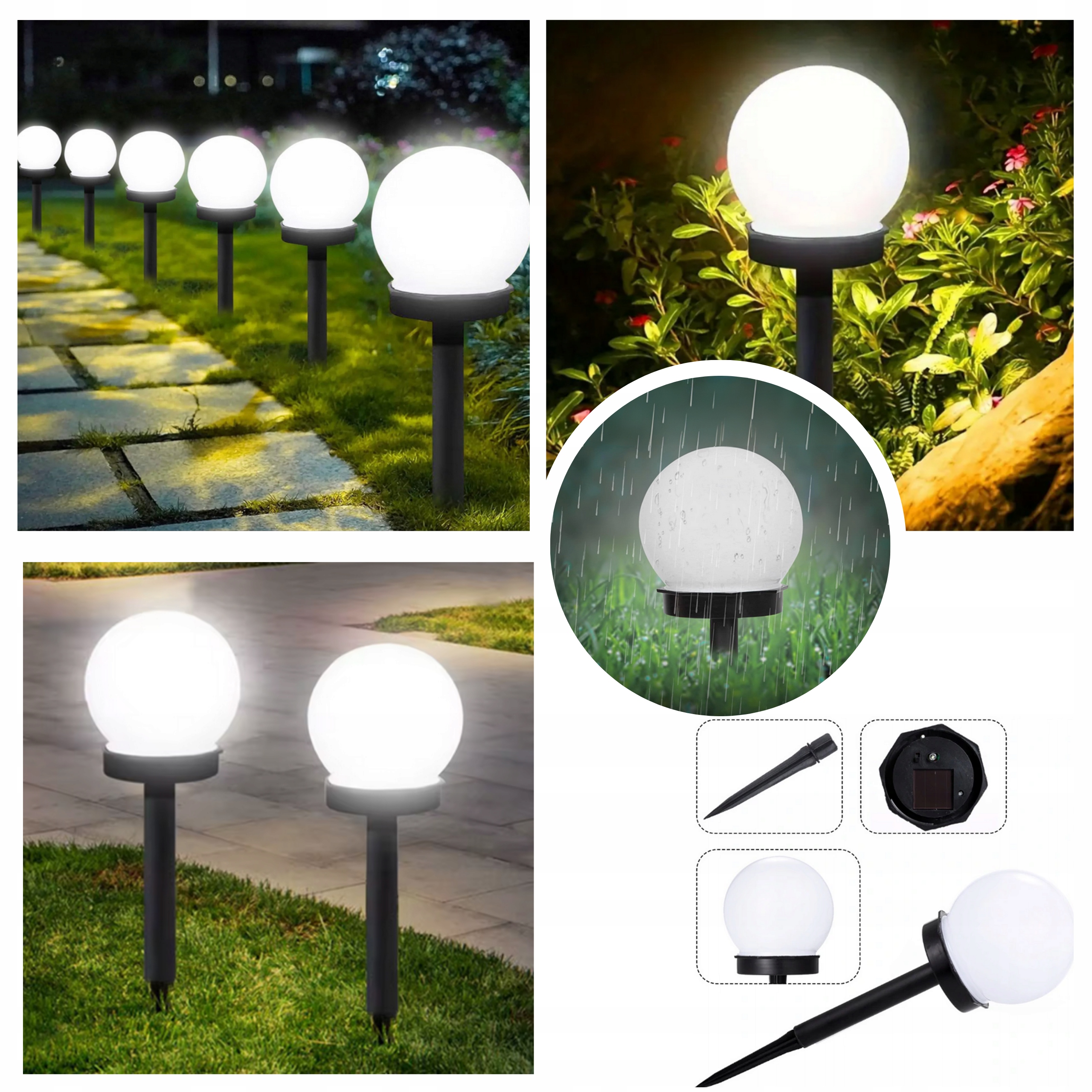 СОНЯЧНІ САДОВІ ЛАМПИ 6 ШТ ДЛЯ САДУ БІЛІ НАКАЧУВАНІ КУЛІ СОНЯЧНІ СВІТЛОДІОДНІ ЛАМПИ