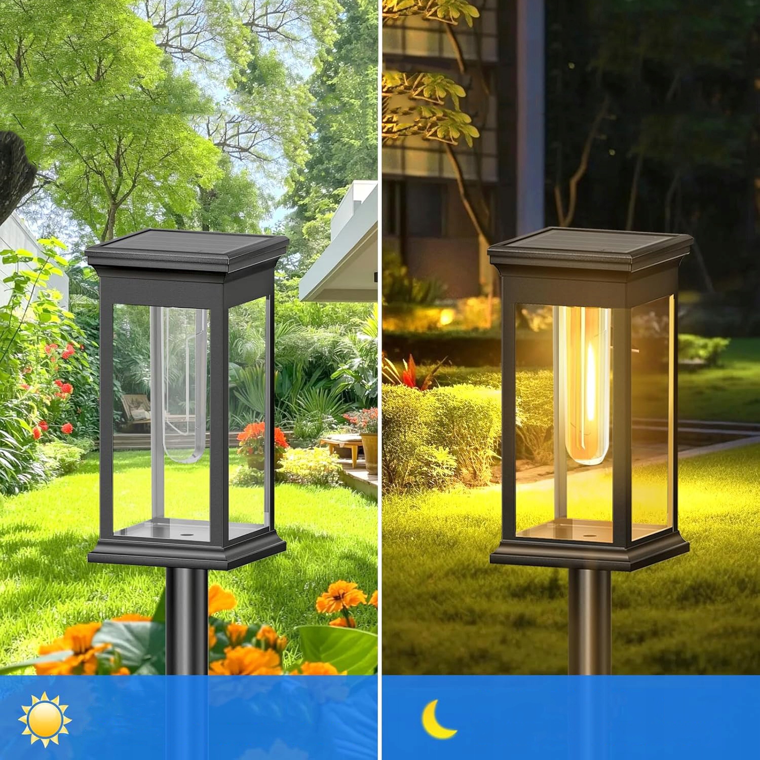 ♔ Легка установка та два варіанти висоти: Наші зовнішні світильники можна використовувати просто шляхом підключення лампи плінтуса, перемикаючи перемикач і розміщуючи в землі (налийте їх раніше, якщо ви натрапите на більш жорсткий підкладку), і ми оснащені двома барами, тож ви можете адаптуватися до ідеального саду. 4 Сонячні світильники - ідеальний вибір, у ретро -стилі та теплому світлі. Ідеальна прикраса для тераси, для саду, на подвір’ї, веранді, стежка, проїжджа дорога тощо