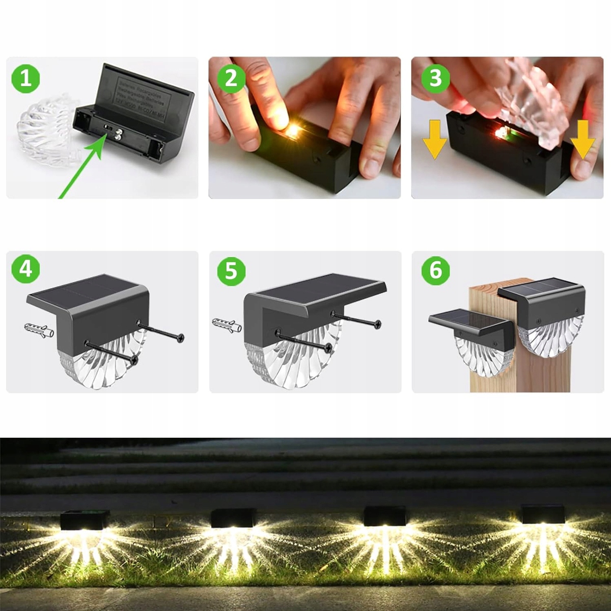 Ідеальне зовнішнє оздоблення - Цей набір зовнішніх сонячних світильників ідеально підходить для прикрас зовнішніх сходів, огорож, садів, ярдів, кроків тераси, ярдів, сходів, колів, поштових скриньок та огорожі.