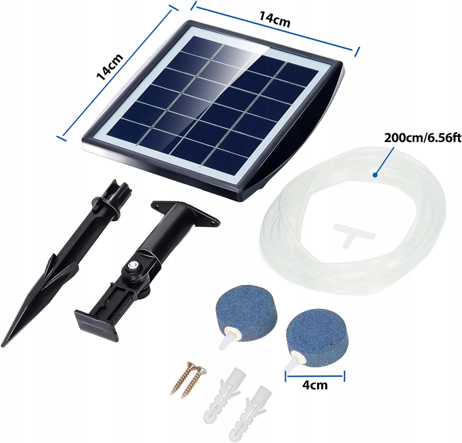 Аератор FLOWood Solar для акваріума; до ставка. Сонячний модуль 2,5 Вт Основна труба довжиною 200 см + 2 трубки по 30 см кожна