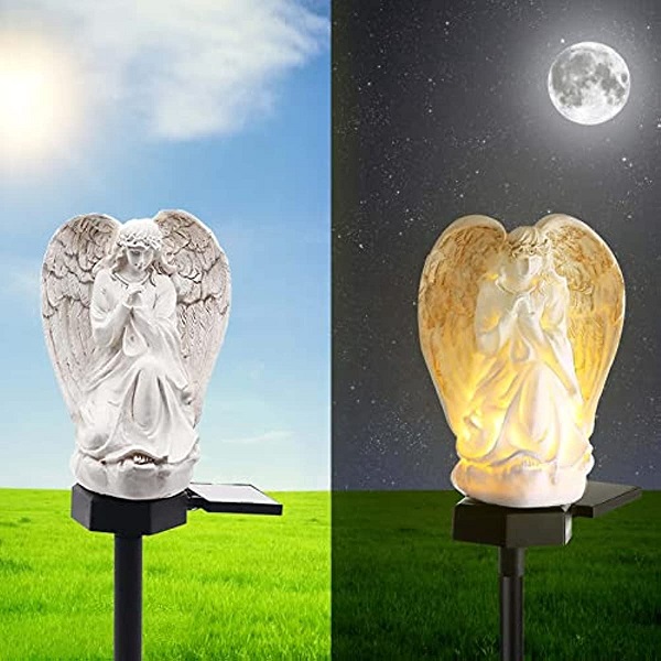- Значний сонячний світильник у формі ангела. Буде ідеальним для кладовища