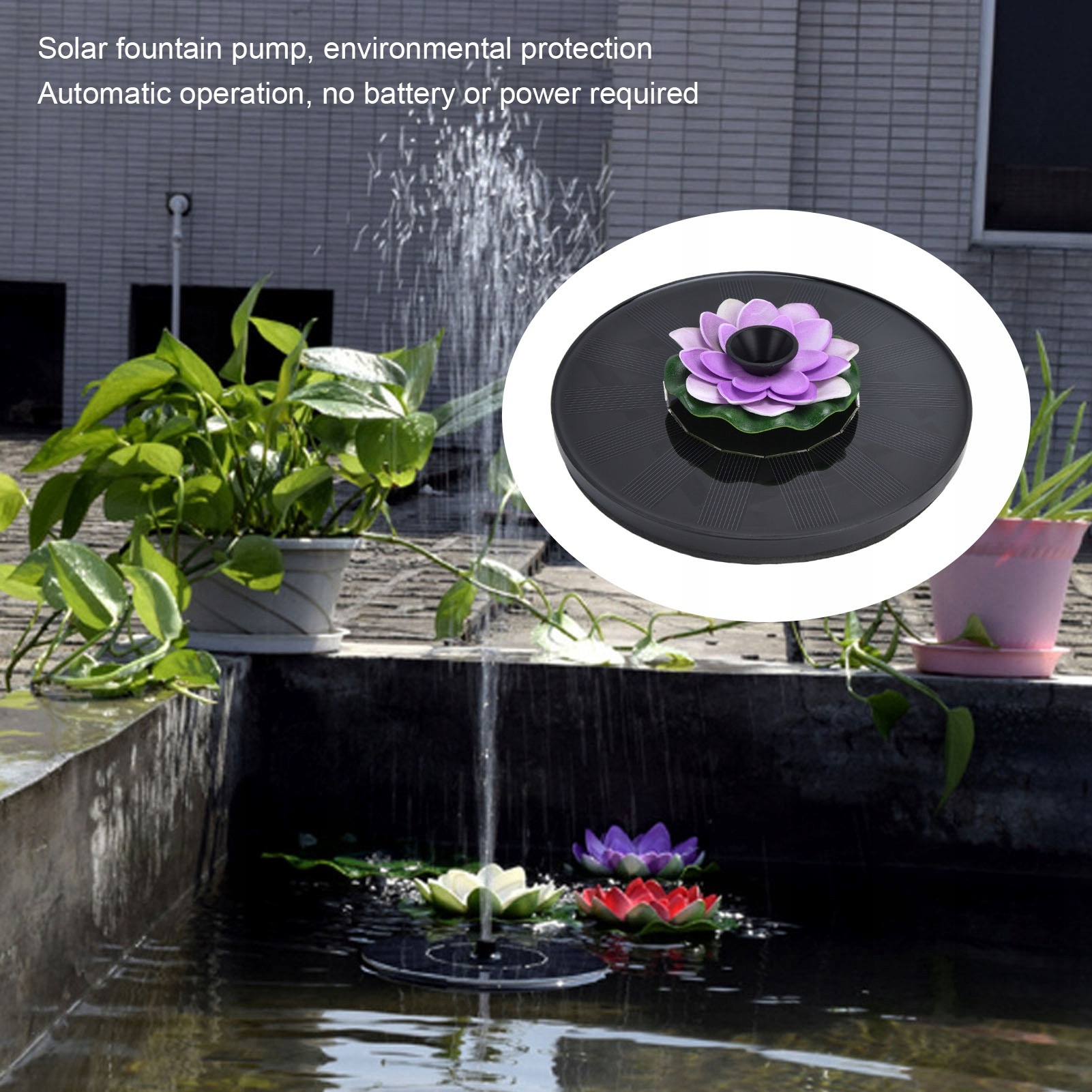 . Сонячний фонтан, що плаває на відкритому саду Лотоса