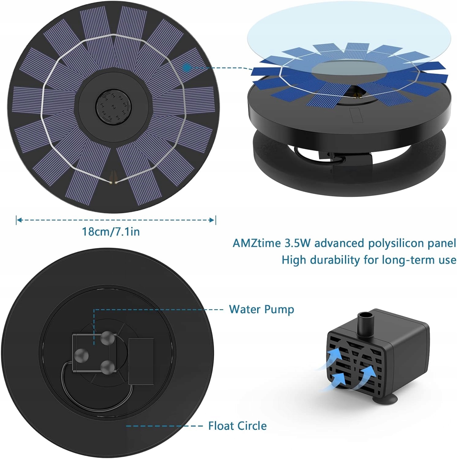 - ❤【Екологічно чиста сонячна панель 3,5 Вт】: цей водяний насос із плаваючим фонтаном оснащено високоякісними сонячними панелями 3,5 Вт. Він повністю керований за рахунок сонячної енергії, не вимагає ні батарейок, ні електрики. Без батарей, справді екологічна сонячна помпа. Просто помістіть фонтанний насос у воду, і насос запрацює автоматично протягом 3 секунд, щойно на нього потрапить достатньо сонячного світла.