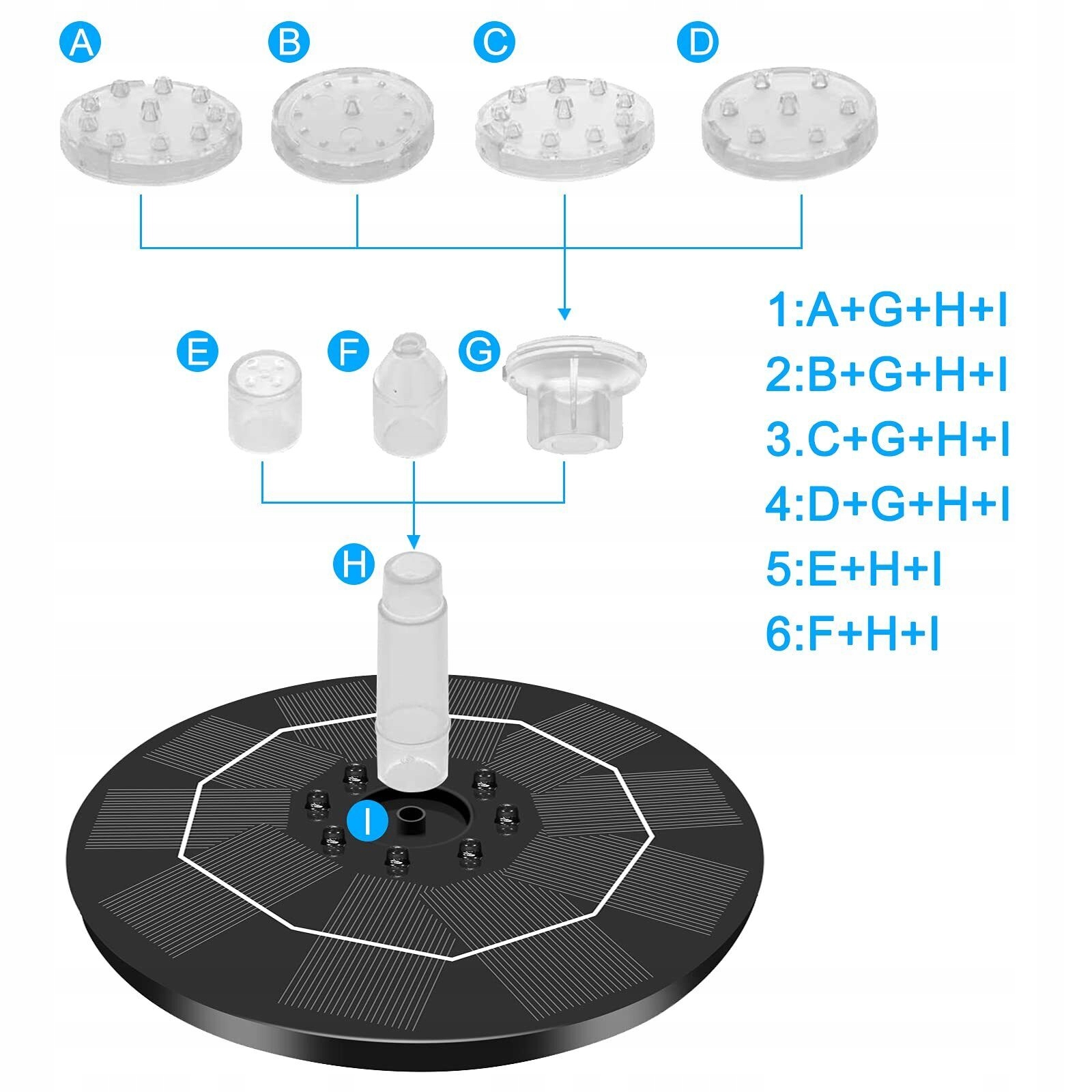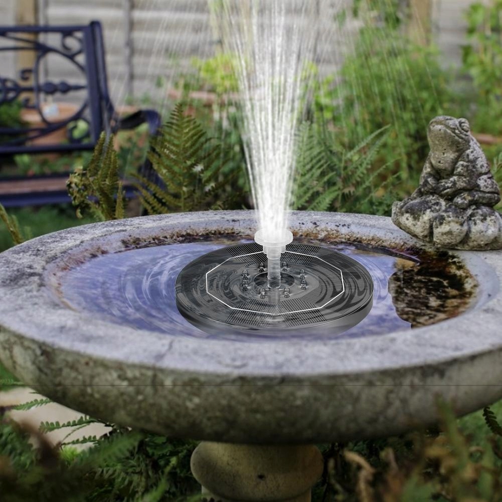 ⛲⛲ 【6 різних типів водного потоку】: Сонячний фонтан для птахів має 6 форсунок для задоволення різних потреб з точки зору висоти та форми водного потоку. Висота водного потоку змінюється, коли з'єднані різні насадки.