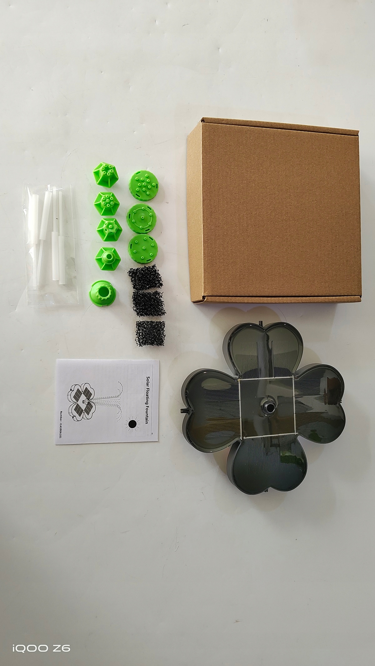 1x сонячна панель; 1x набір з 4 шестикутних форсунок (4 штуки); 1x 4-частинні форсунки (4 штуки); 4 -кратні кріплення (3,5 дюйма); 1x бавовняний фільтр (3 шматки); 1x посібник користувача; 1x карта з ключовими словами. Розмір - Сонячна панель: 7 дюймів x 7 дюймів x 0,8 дюйма; Довжина кріплення брусків - 3,5 дюйма