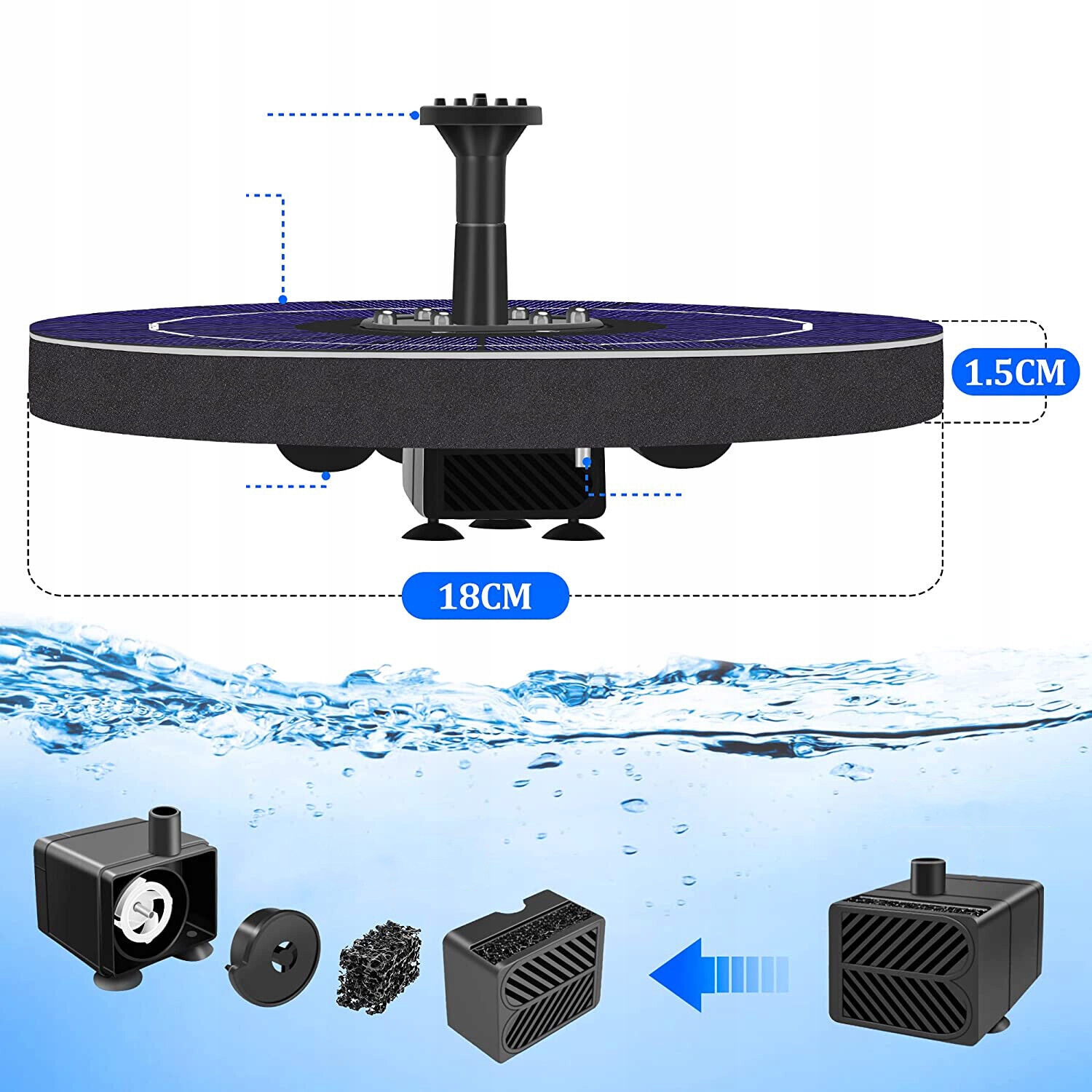 ♦ ️ ♦ ️ 【Легка установка】 Кожен може легко встановити насос без використання інструментів. Просто встановіть сонячний насос на воді та сонці, і він буде працювати автоматично за 3 секунди. 7 Різні форсунки можуть відповідати різним вимогам щодо кількості розпилювача або розпилення, щоб не вийти з пулу. B> Дуже добре підходить для басейнів для птахів, невеликих ставок, басейнів, акваріумів, прикраси саду та циркуляції кисневої води, щоб забезпечити щасливе та цікаве життя в саду.