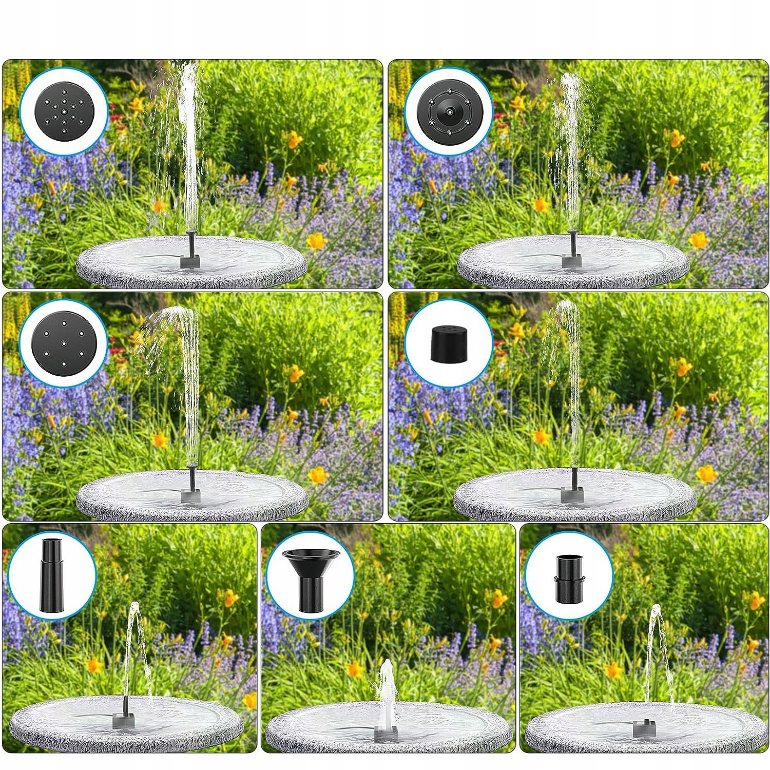 - Сонячний насос для суглоба з 7 різними форсунками може задовольнити різні потреби з точки зору висоти потоку або форми потоку.