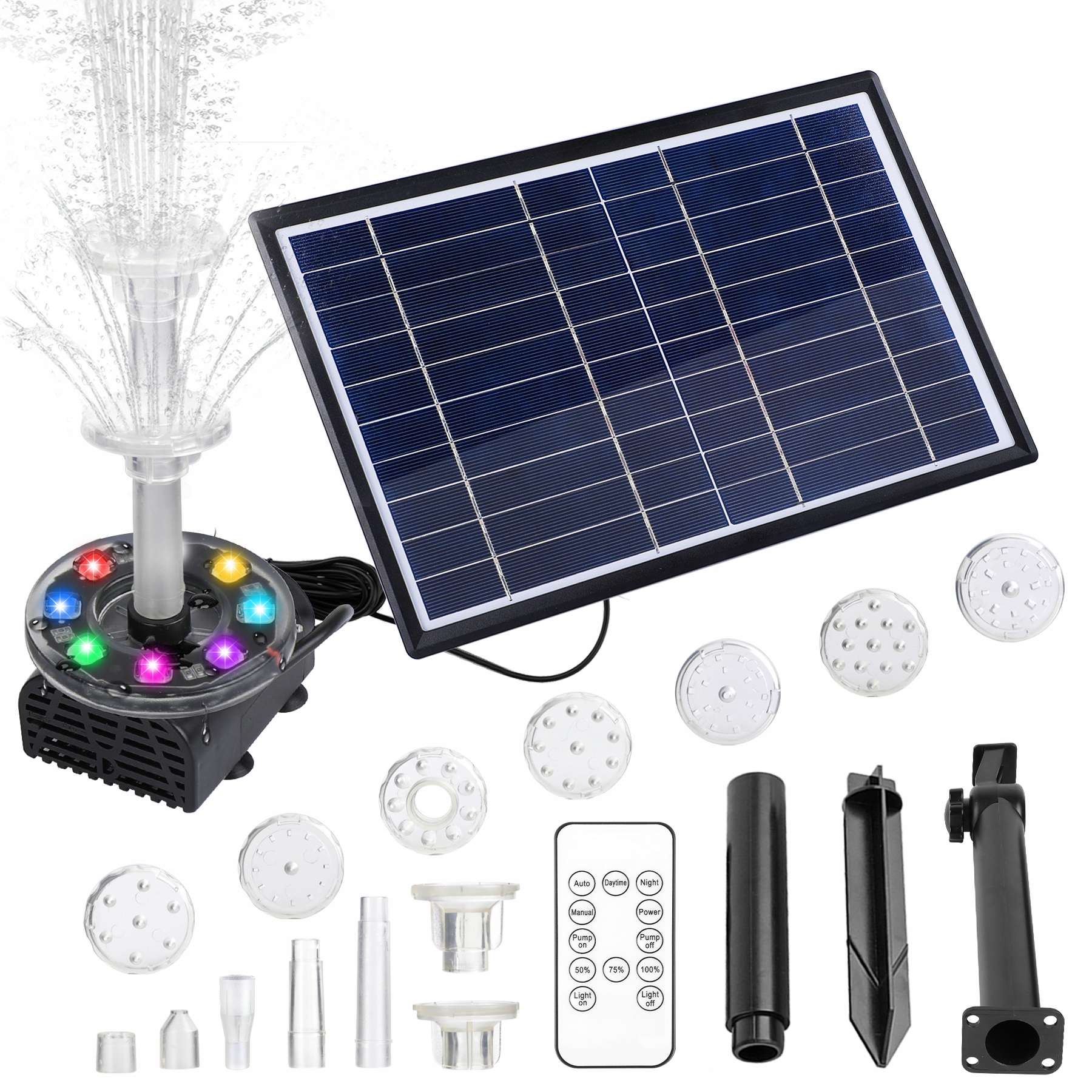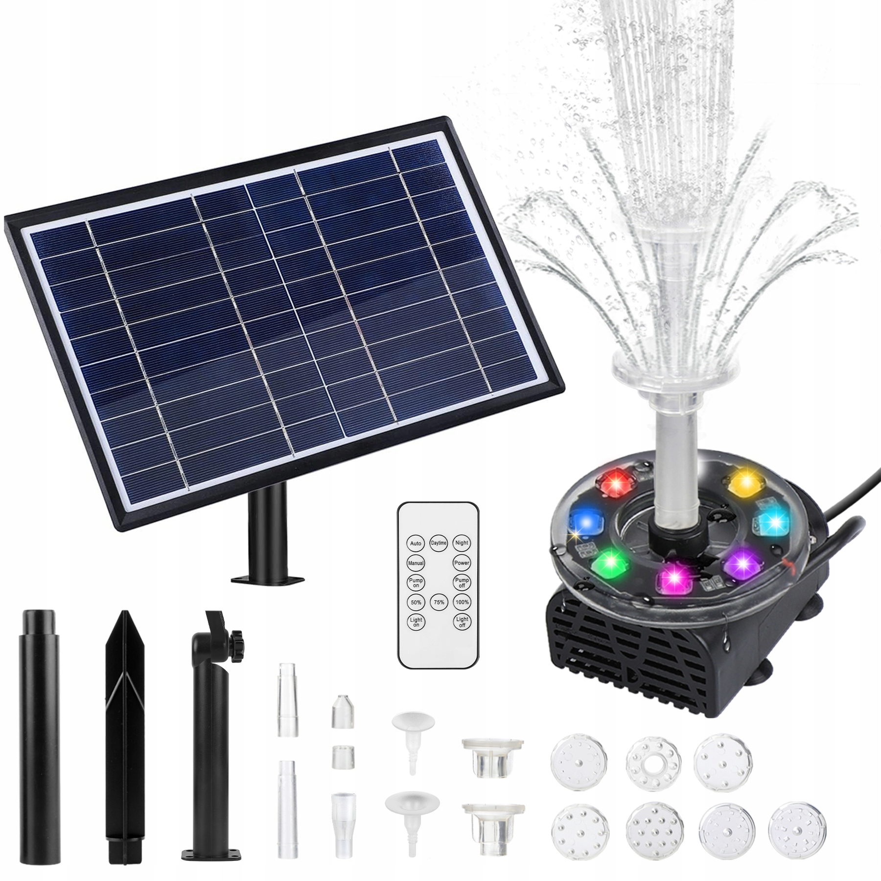 СОНЯЧНИЙ ФОНТАН, САДОВИЙ ФОНТАННИЙ НАСОС, ГОРЩИК ДЛЯ ВОДИ 10 Вт З 8-кольоровим світлодіодним індикатором з дистанційним керуванням