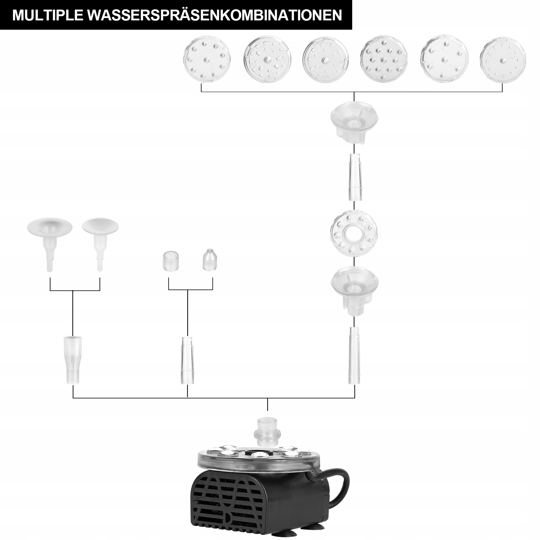 Світлодіодний насос для сонячних фонтанів містить 16 прозорих сопел; Можна додати двошарову або одну насадку, щоб комбінувати більше форм за бажанням.