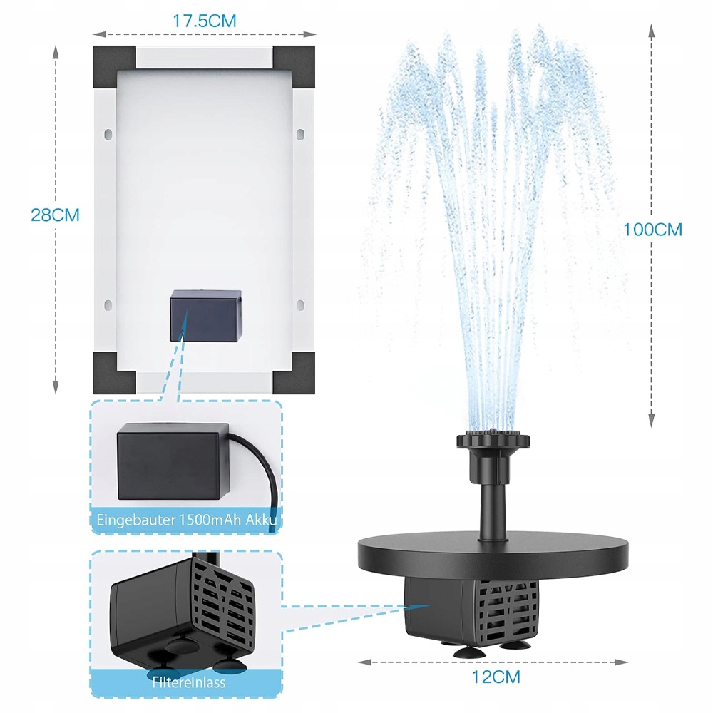 Цей сонячний водяний насос використовує окремий процес проектування. Ви можете додати правильний шланг до насоса. Його можна використовувати для створення зовнішніх водних елементів. Ви також можете використовувати цей насос для створення системи циркуляції води. Цей насос ідеально підходить для купання птахів, акваріумів, невеликих ставків, басейнів, садів та зовні.