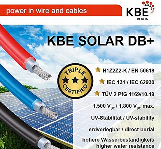 Покращений і тричі сертифікований KBE Solar DB+ H1Z2Z2- сонячний кабель K 62930 IEC 131 PV 1500-K враховує той факт, що в останні роки відбулося значне підвищення вимог до сонячних кабелів, тому, зберігаючи чудові властивості, він пропонує цілий ряд додаткових переваг: