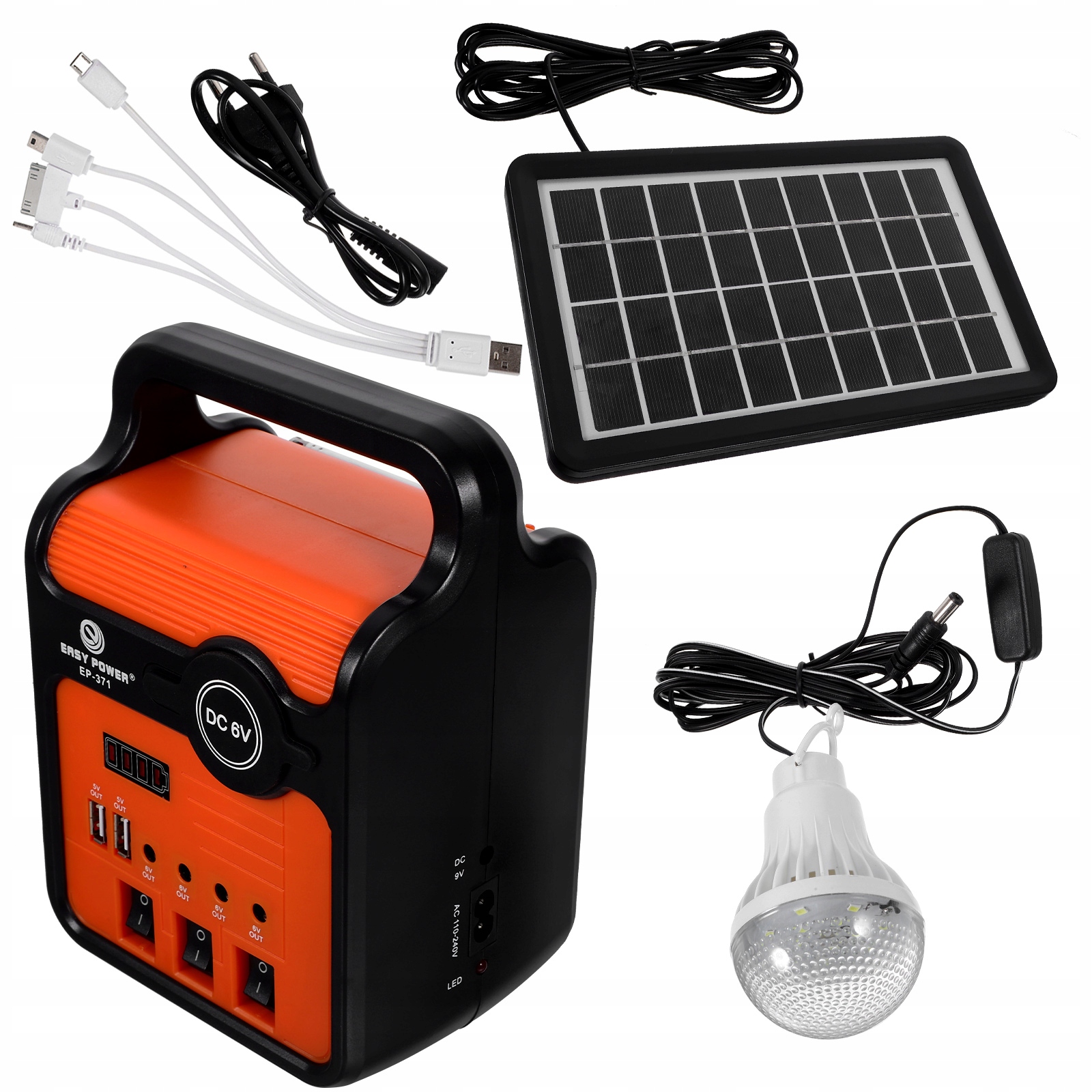 - Десять комплектів портативних сонячних генераторів включають батареї, сонячну панель, світлодіодне освітлення та багатофункціональний кабель USB. Його можна заряджати сонячною енергією або змінним струмом. Адаптер змінного струму підключається до одного кабелю живлення. Акумулятор також є зарядним пристроєм для телефону та джерелом живлення для світлодіодних ламп. Світлодіодний індикатор вказує на зарядку. Цей комплект також є сонячним інверторним генератором.