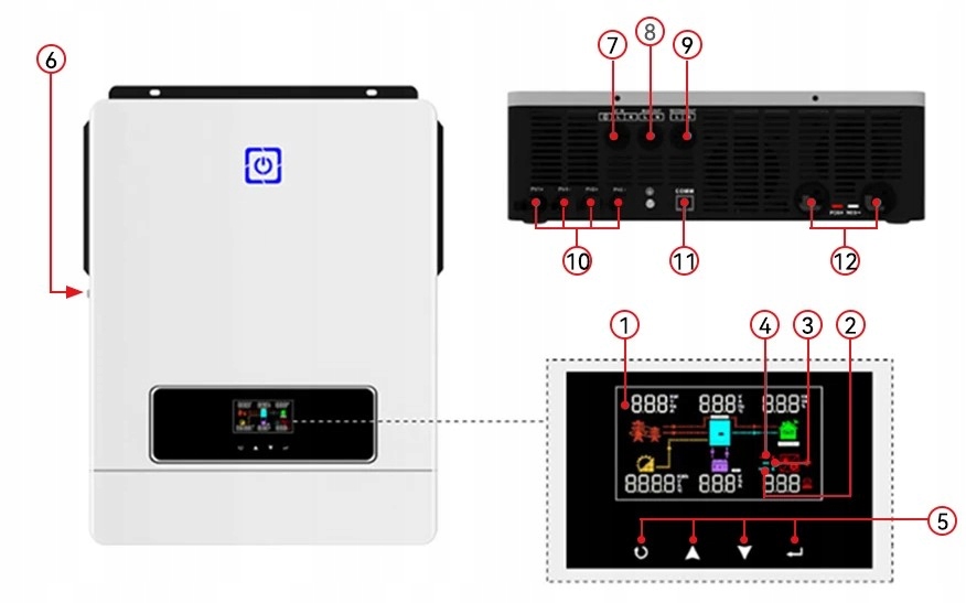 Представлений сонячний інвертор призначений для побудови незалежних систем енергетичних систем поза мережею 230V на основі енергії, отриманої з ПВ-панелей, енергетичних мереж та батарей.