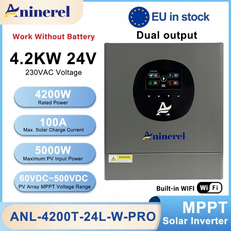 Сонячний інвертор 4200 Вт 24 В Aninerel Hybrid Offgrid 5 кВт WIFI інвертор