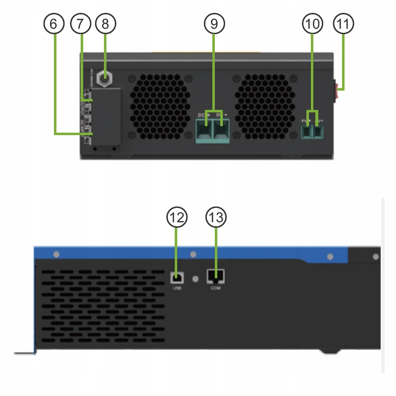 Максимальний зарядний струм: 60A MPPT. (живлення від мережі): 230 В змінного струму
