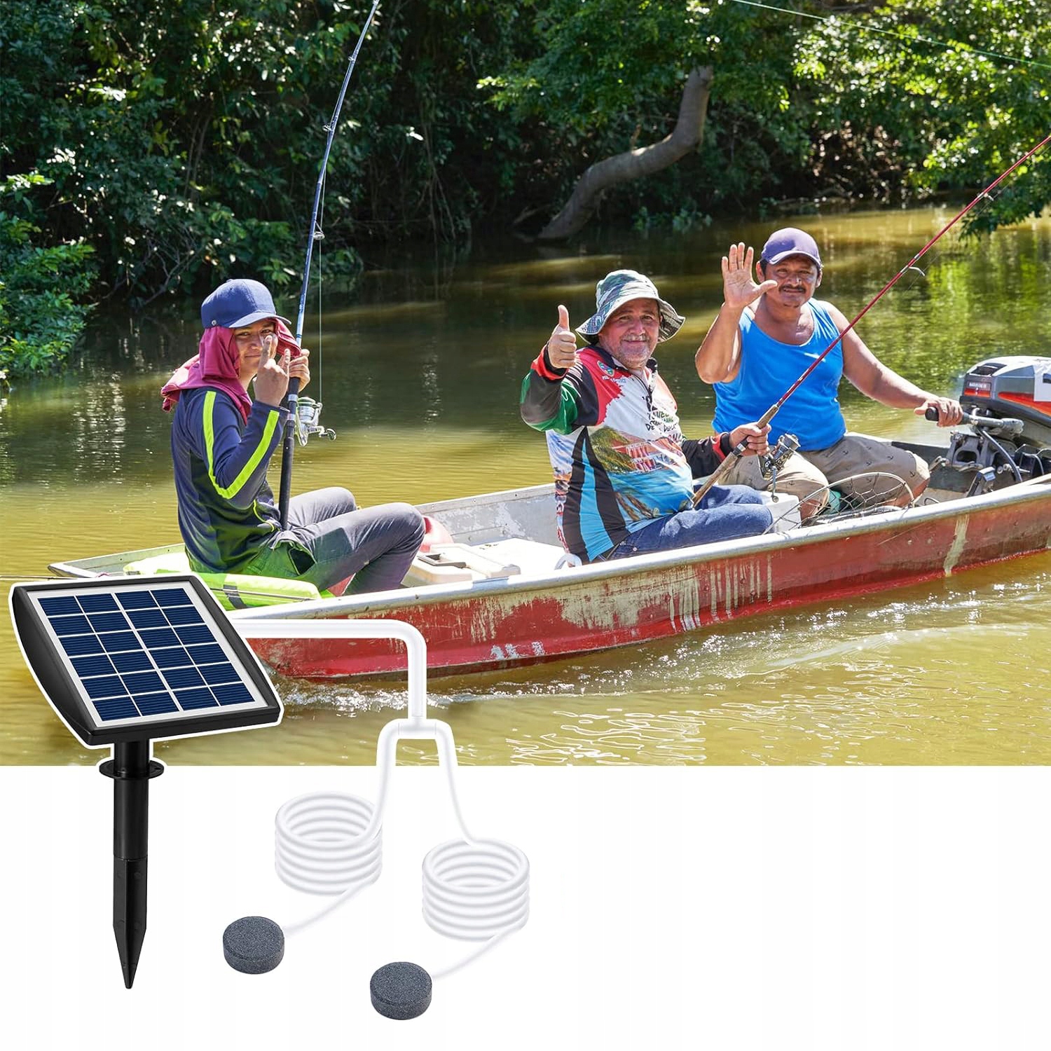 ⛲🐟 Новий насос сонячного вентилятора - живлення з сонячною енергією, бездротова конструкція з екологічно чистою енергією, ви можете відрегулювати кут сонячних модулів на 180 °, щоб отримати більше сонячної енергії. Сонячний повітряний насос допомагає зберегти вміст кисню в суглобі або акваріумі. Це дозволяє риболовлю розвиватися в кисневому середовищі і демонструє підвищену життєву силу та частоту вилуплення, з яких ви будете пишатися. Зовнішнє використання може забезпечити до 35 годин роботи. Кисневий насос до суглоба підходить для акваріумів, транспорту риби, риболовлі для диких тварин та зберігання морепродуктів тощо