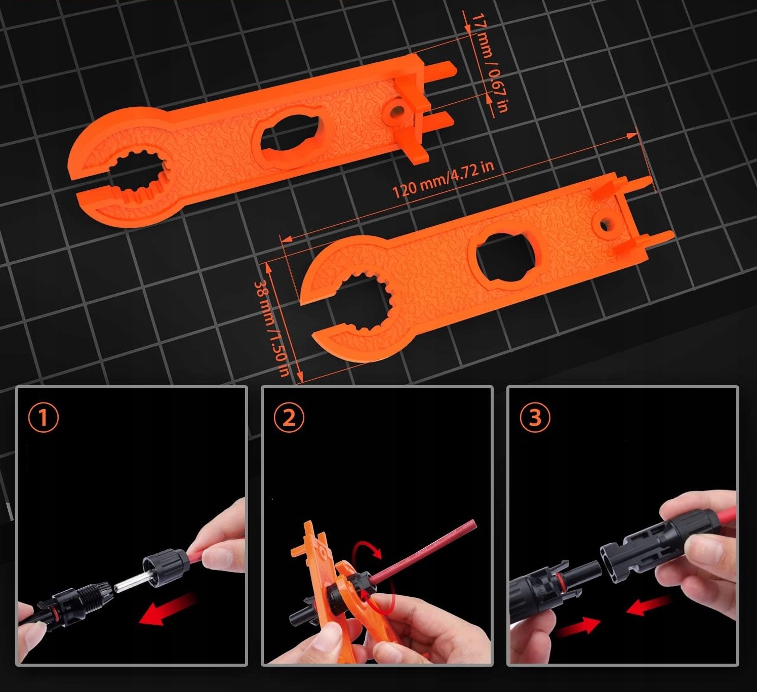 Два гайкові ключі спеціальні для збирання та розбирання вилок і розеток, виготовлені з міцного матеріалу ABS, легкі, портативний. Швидко затягніть роз’єм, щоб заощадити час і робочу силу під час встановлення.