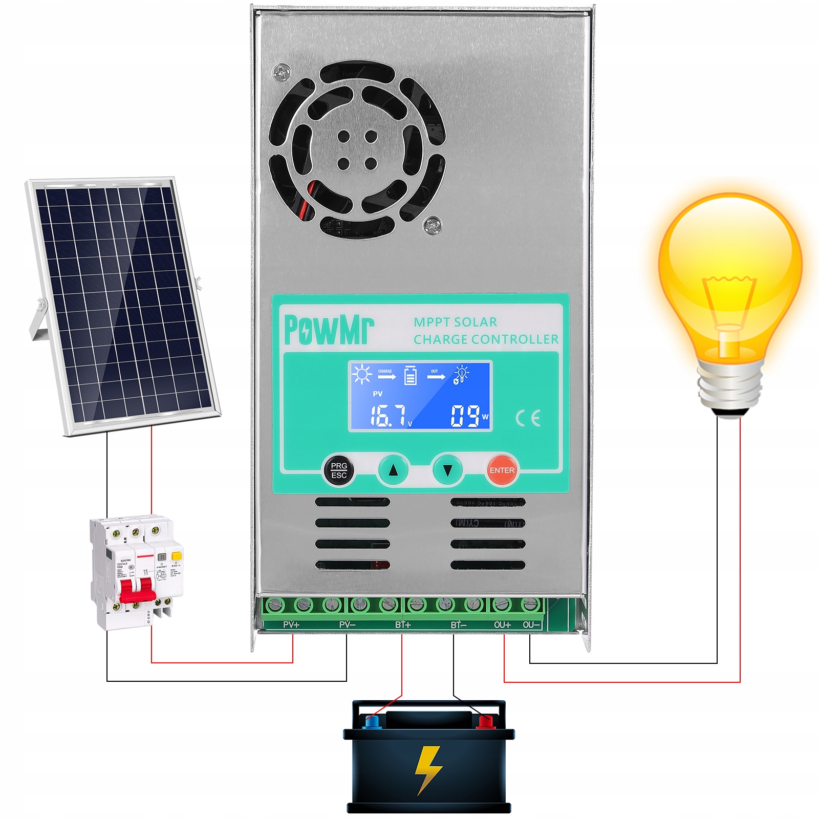 - Цей продукт є складним контролером сонячного заряду, найкращим рішенням для сонячної енергії для житлових і комерційних застосувань. Завдяки міцній конструкції та передовій технології наш контролер сонячного заряду максимізує вихід енергії, одночасно забезпечуючи ефективність і надійність системи.