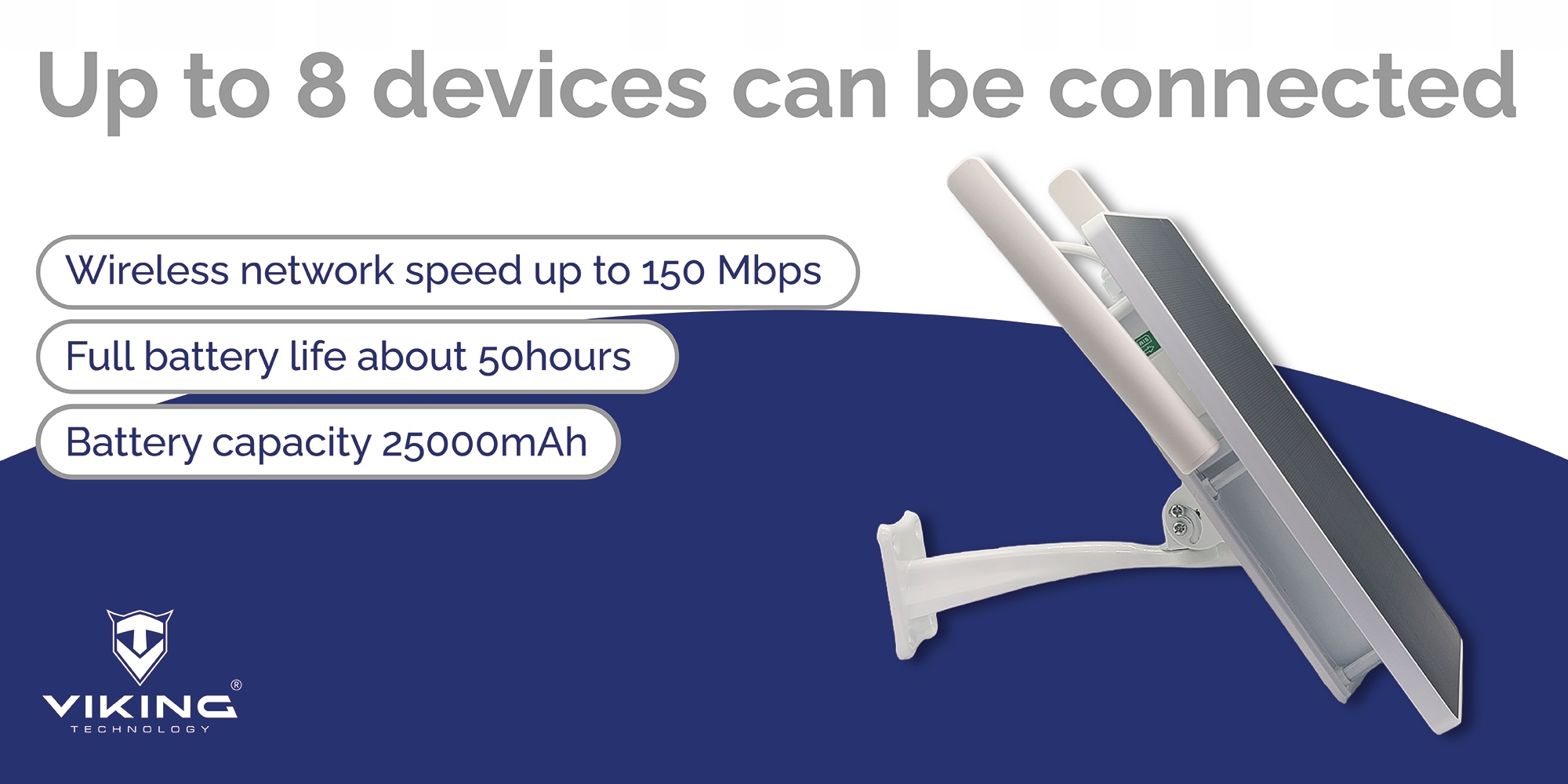 Сонячний маршрутизатор Viking R09 4G оснащений акумулятором ємністю 25 000 мАг, який забезпечує до 50 годин роботи на одному заряді. Батарея живиться від сонячної панелі потужністю 15 Вт.