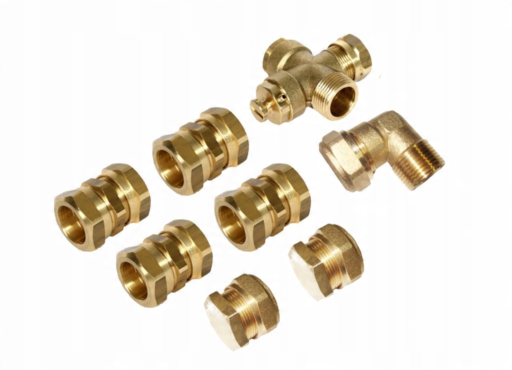 Набір оснащений системою латунних компресійних з'єднувачів, що забезпечує ефективне та надійне з'єднання колекторів і труб.