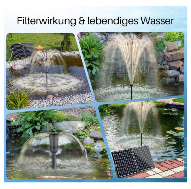 Насос для сонячних батарей Biling 50W - це повний набір фільтрів для ставків і ставків, який поєднує високу ефективність, енергоефективність і необслуговування завдяки сонячній енергії потужності.