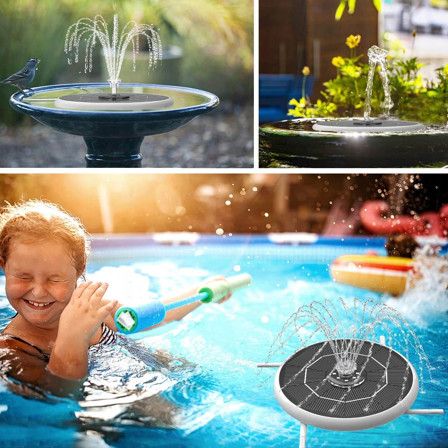 💧💧【Багатофункціональний】:Сонячний фонтан ідеально підходить для басейну, невеликого ставка, басейну, акваріума, прикраси саду, циркуляції кисневої води, ванни для птахів, забезпечення щасливого та цікавого саду життя .