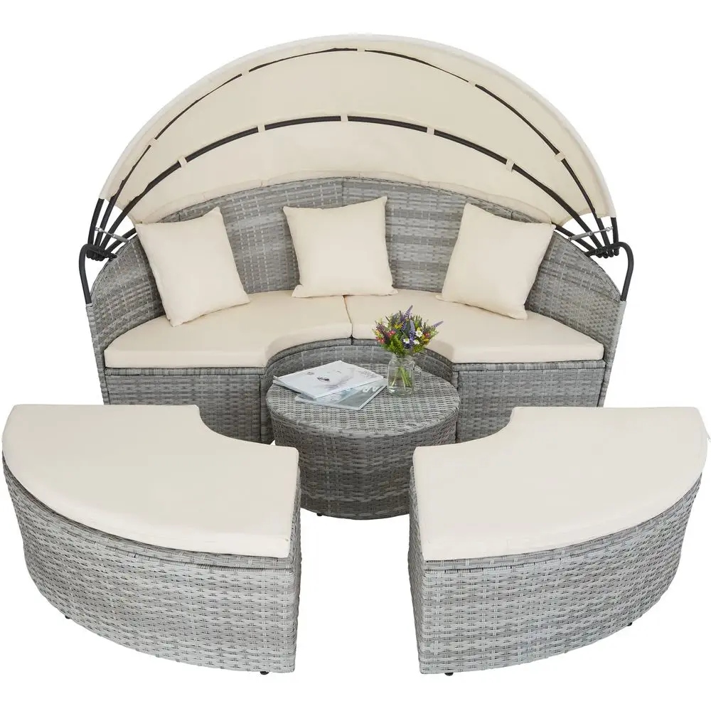 Завдяки цьому високоякісному сонячному острові алюмінію та полівтану ви зміните свій сад, терасу, зимовий сад, балкон або спа -зону на оазис релаксації. У сонячні дні сонячний дах із складанням забезпечує приємний відтінок і захищає від вітру. Це практичний набір святкових меблів або комфортного сонячного. Острів Полістані може бути швидко і легко пристосовано до поточних потреб, саме тому він повинен бути у вашій оазисі розслаблення.