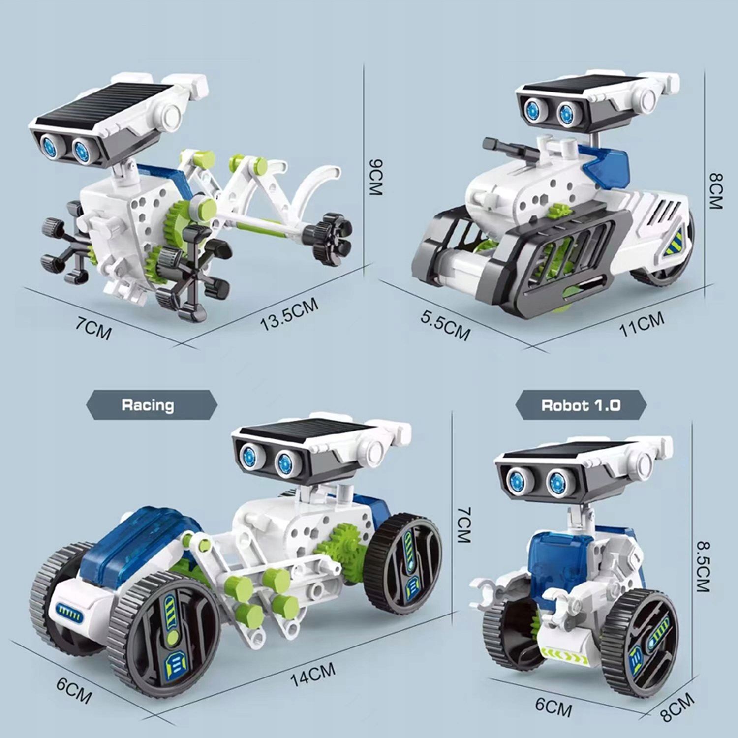 Сонячний робот іграшок-це унікальний навчальний інструмент, призначений для дітей у віці 8-12 років, що пропонує практичний досвід точних наук та інженерії. Навчає дітей з відновлюваною енергією. Крім того, спостереження за тим, як живуть роботи на сонці, справді захоплююче.