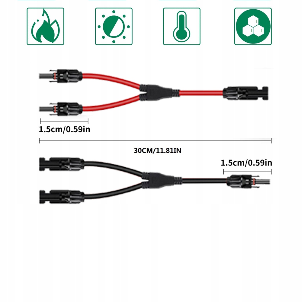 - 【сонячна штепсельна вилка】 4 мм sup2; Червоний + чорний розмір плагіну Y: Довжина лінії: 27,5 см/10,82 дюйма, ширина вилки: 1,5 см/0,59 дюйма, плагін сонячної панелі 1Y2 може допомогти підключити 2 сонячні батареї, допомагає зберегти кабелі, дуже практичні.