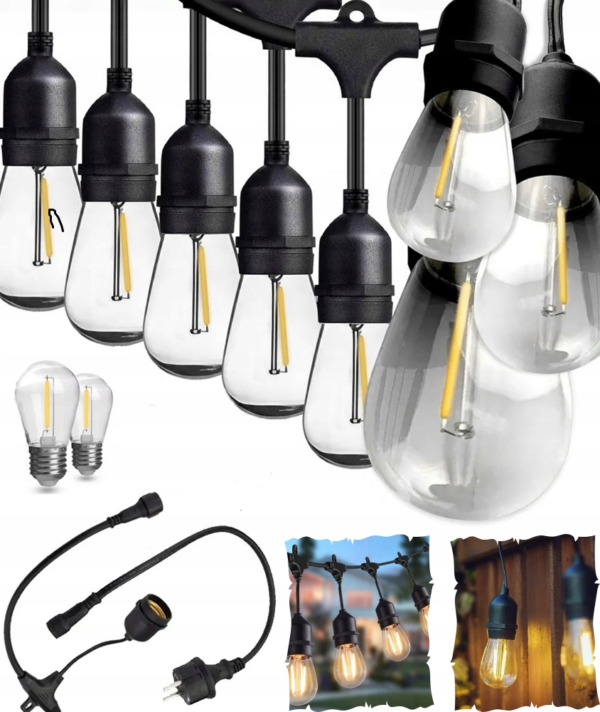 - ✅ Girland оснащена красивими, стильними лампочками, що світить теплим кольором, що освітлює оточення ніжним, приємним світлом. Завдяки цьому гірлянду можна використовувати як на відкритому повітрі, так і в приміщенні, не турбуючись про погодні умови.