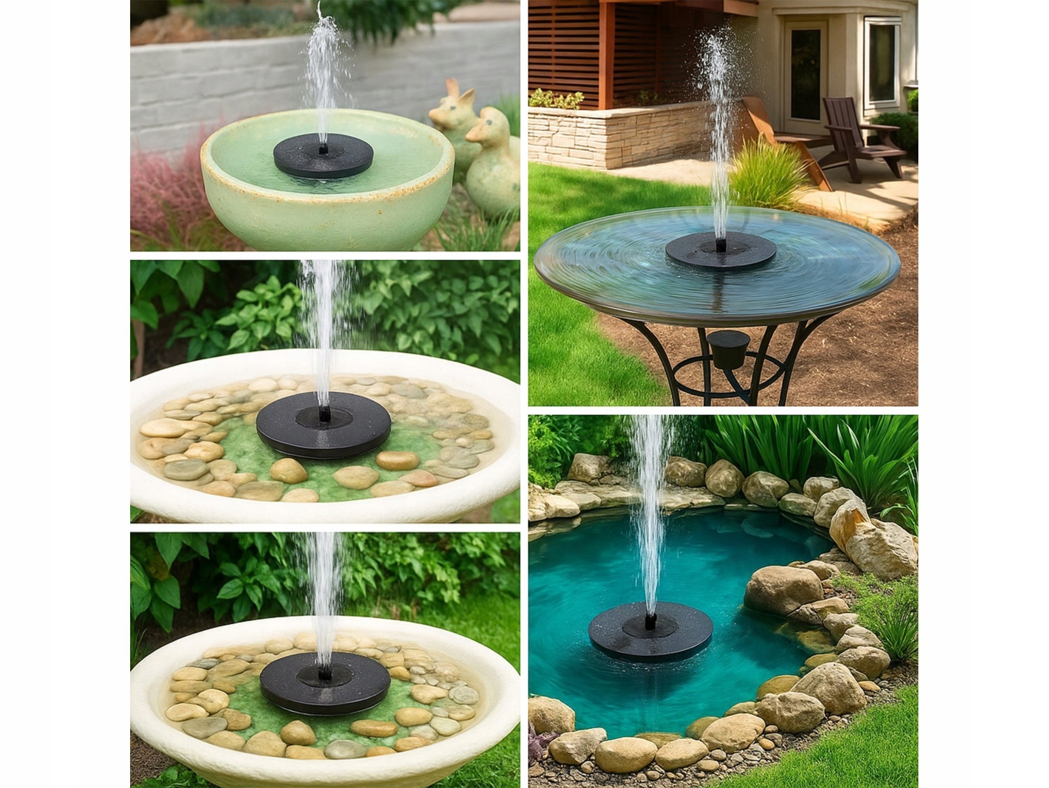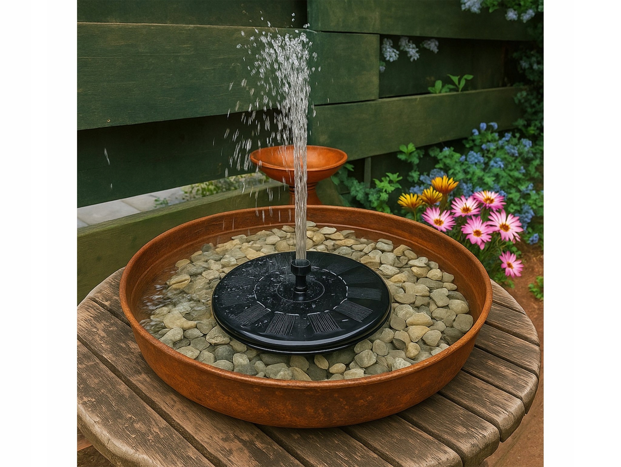 Фонтан на сонячних батареях - це екологічне та ефективне рішення, яке додасть шарму будь-якому саду, ставку чи акваріуму. Завдяки високоефективній сонячній панелі та новій технології безщіткового насоса фонтан вмикається автоматично під час впливу сонячного світла, забезпечуючи плавний і безперебійний потік води без необхідності підключення до електромережі.