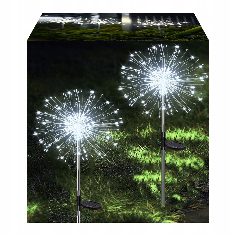 Ступінь водонепроникності IP65, опора світла виготовлена з високоякісної нержавіючої сталі та високоякісного пластику, витримує будь-яку погоду, включаючи сильний дощ та сніг, не турбуючись про іржу та вицвітання. Зовнішні прикраси та високоякісні світлодіодні сонячні феєрверки яскраво блимають, міцні, екологічні, надійні та стійкі до корозії.