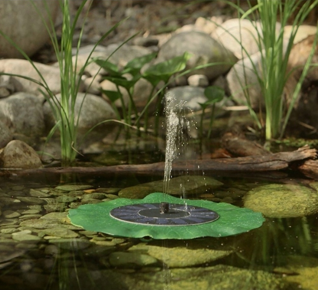 Ви можете насолоджуватися сонячними днями чудовим водяним каскадом без використання електроенергії та необхідності встановлення складних фонтанних систем, а приваблива форма плаваючого листя маскує насосне обладнання!