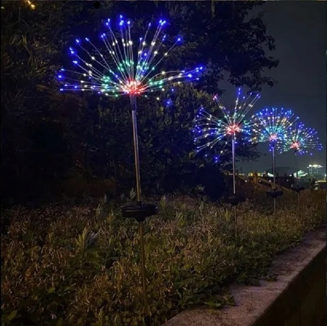 Назва світлодіодної сонячної лампи Firework говорить сама за себе: світлодіоди розташовані таким чином, що вони виглядають як миготливий феєрверк. На тонкій чорноземній точці, на півдорозі, як платформа, розміщено сонячний модуль, який оснащений батареєю, яка забезпечує світіння феєрверку в темряві. Світильник управляється сутінковим датчиком, який включає його ввечері і знову вимикає вранці. Холодне біле світло незліченних світлодіодів є чудовим світловим акцентом у саду.